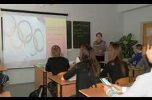 Егорова Т.Т. - учитель английского языка сегодня провела открытый урок на английском языке на тему: «Навстречу Универсиаде». Учащиеся 8 «В» класса подготовили презентацию об Универсиаде- 2013 в городе Казани. Они рассказали о своих достижениях и победах в соревнованиях по лыжам, баскетболу, и фигурному катанию.