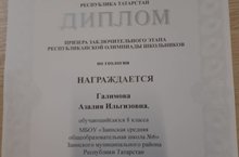 С 8 по 11 февраля в г.Казани прошел заключительный этап Республиканской олимпиады школьников по геологии. Ученица 8 класса нашей школы Галимова А. (учитель - Идиятуллина Л.Р.) стала призером олимпиады! Поздравляем и желаем дальнейших побед!!!