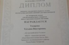 С 5 по 7 февраля в Казани прошел заключительный этап Республиканской олимпиады школьников по татарскому языку для русскоязычных учащихся школ с русским языком обучения. Тазирова Т., ученица 4 класса, стала призером на этой олимпиаде, учитель - Ахметшина Ф.А. Поздравляем и желаем дальнейших побед!