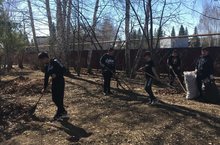 С 19 апреля по 30 апреля идёт акция "Чистый школьный двор". В этот период учащиеся 7-8 классов убирают территорию школы.