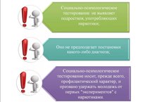 СПТ не выявляет подростков, употребляющих наркотики. Оно не предполагает постановки какого-либо диагноза Вашему ребенку. Задача тестирования – выявить у детей личностные (поведенческие, психологические) особенности, которые при определенных обстоятельствах могут стать (или уже стали) значимыми факторами риска употребления ПАВ.