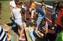Сегодня дети лагеря приняли участие в конкурсах школьного сабантуя. Это бег в мешках, бег с ложками, в спортивной эстафете, в срезание призов, битье по ведру и др. Дети с удовольствием принимали участие во всех конкурсах и получали призы.