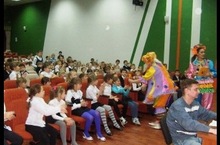 18 октября в актовом зале для учащихся начальной школы казанский театр «Клаксон» показал театрализованное представление «Веселое ток-шоу Веснушки и Ириски».