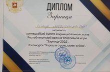 16.04.2022 на базе МБОУ ЗСОШ 7 прошел муниципальный этап военно-спортивной игре "Зарница". Команда школы продемонстрировала хорошие результаты, став первыми в конкурсе Ратной страницы истории страницы а также в конкурсе Хорош в строю, силен в бою. Ребята заняли второе общекомандное место. Поздравляем с хорошим результатом и желаем дальнейших успехов.
