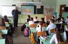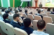 11 апреля в актовом зале школы прошла информационная беседа с юношами допризывного возраста нашей школы с руководителем городского отряда юнармейцев Миронов А. В ходе беседы показаны презентации и видеоролики о военной службе. Встреча проходила в рамках проекта «Прокачай своего героя».