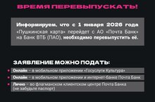 3. С 15:00 1 января 2026 года ВТБ начнет выпускать и обслуживать Пушкинские карты.