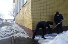 В терретории школы каждый день оргонизуется ворошение снега.