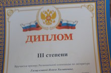 С нашей школы региональном олимпиаде по литературе участвовали 3 учащихся и Галиуллина И. среди 37 школ региона 3 место. Поздравляем!