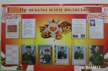 Февраль- оборона ае. Ай буе мәктәбебездә төрле чаралар үткәрелә. 7 сыйныф укучылары чыгарылыш укучыларнын кайсы армия сафларында хезмәт итүләрен ачыкладылар. Бүгенгесе көндә 5 егетебез армия сафларында Ватан алдында бурычын үти. Алар: Исрафилов Н., Ганиев А., Егоров А., Баранов Р., Ахметшин И. Укучыларыбыз бу егетләр турында мәгълумат туплап мәктәбебездә стенд ясадылар, аларга теләкләр яздылар. Ватанныбызны, безне саклаучы егетләр укучыларга үрнәк булып тора.