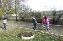 Һәр атнаның чәршәмбе һәм җомга көнендә мәктәп яны территориясен җыештырырга чыгабыз.