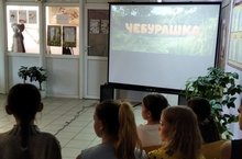 Дети смотрели кино "Чебурашка". После кинофильма их ждал "батут". Детям все понравилось. Они не заметили как прошел день.