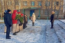 Ученики Верхненалимской школы тоже чтили память героев и возложили гирлянду на обелиск.