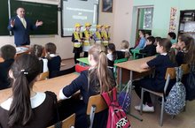 23 көнне Иванов Вадим Валентинович "Мин транспортта йөрим" темасы буенча әңгәмә үткәрде. Балалар белән юлда йөрү кагыйдәләрен искә төшерделәр, яктылык кайтаручы элементларның кирәклеге аңлатылды. Әңгәмәне йомгаклап, Вадим абыйлары ЮИД отрядына яңа формалар тапшырды.