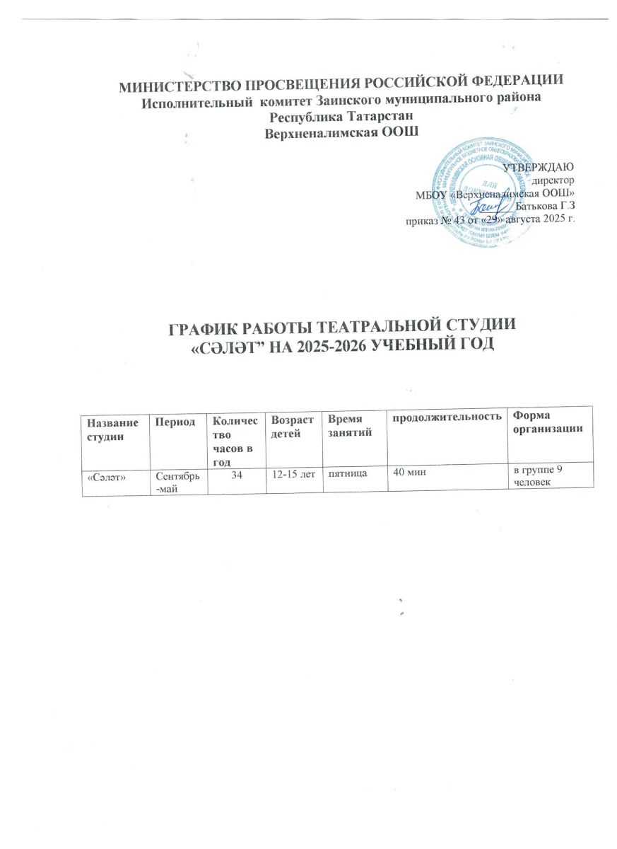 График работы школьного театра "СӘЛӘТ" на 2025-2026 учебный год