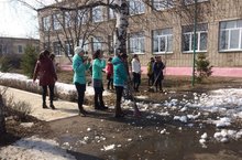 Была проведена уборка, на территории школы: тщательно подметены игровые площадки, стадион, приведены в порядок