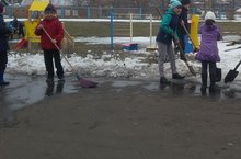 Мы всей школой присоединялись лебедю. Каждый день, по мере возможности, работаем по очистке территории школы и села.