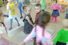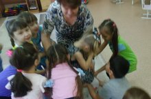 Постепенно задания усложняются: дети возят друг друга по кругу, «змейкой», выполняют различные задания.
