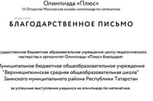 За активное участие в онлайн-олимпиаде по математике ученики нашей школы были награждены дипломами и сертификатами. Получено благодарственное письмо на имя школы.