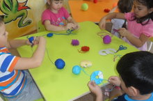 Описание: воспитатель предлагает ребенку поучаствовать в ярмарке. Для этого необходимо сделать бусы, браслеты, рамочки для фотографии при помощи игрового материала.