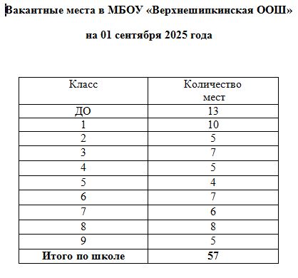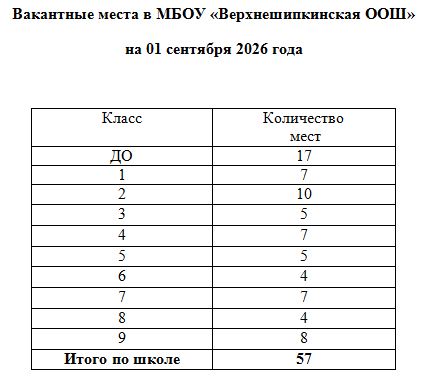 Вакантные места для приема на 1 класс в 2024-25 у. г. - 5