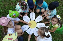 В солнечный июльский день в нашем детском саду прошла квест-игра "Подарю ромашку я", посвященный "Дню семьи, любви и верности". Чтобы не рвать цветы и не вредить природе, Леший предложил ребятам смастерить ромашки - символ праздника, пройдя по волшебной карте, и пообещал на каждой остановке выдавать по одному лепестку. Ребята с радостью отправились в путь за приключениями. На остановках "Надёжный дом", "Я люблю свою семью", "Семья", "Семейные традиции", "Почемучки", "Спортивная" и "Музыкальная" дети выполняли различные задания и получали лепестки с надписями "Крепкая", "Любимая", "Большая", "Дружная", "Любознательная", "Спортивная", "Хорошая". Вот из этих лепестков ребята и собрали ромашку. Праздник удался, ребята остались довольны!