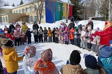ребята нашего детского сада стали участниками Масленичных гуляний. Любимые персонажи детей - Скоморохи, Зима и Весна, Леший и Баба Яга - устроили веселые масленичные забавы. Дети соревновались в смелости и находчивости, силе и ловкости, смеялись над шутками Скоморохов и Бабы Яги.