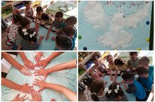Сегодня в старшей логопедической группе «А» была проведена беседа «Международный день мира», был разговор о безопасности детей и как нужно себя вести в различных ситуациях. В случае опасности ребята знают номера телефонов, куда можно обратиться за помощью - «01, 02, 03». Также на мультимедийном экране воспитанникам детского сада в доступной форме была представлена информация о глобальной проблеме нашей современности - терроризме. Взрослые и дети стали участниками совместного творчества « Я – за мир!». В своих рисунках отразили счастливое детство, мирную планету, дружбу народов.