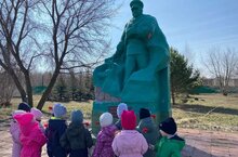 В рамках года Защитника Отечества и 80-летия Победы воспитанники второй младшей группы "Звёздочки " возложили цветы к памятнику Пограничника.